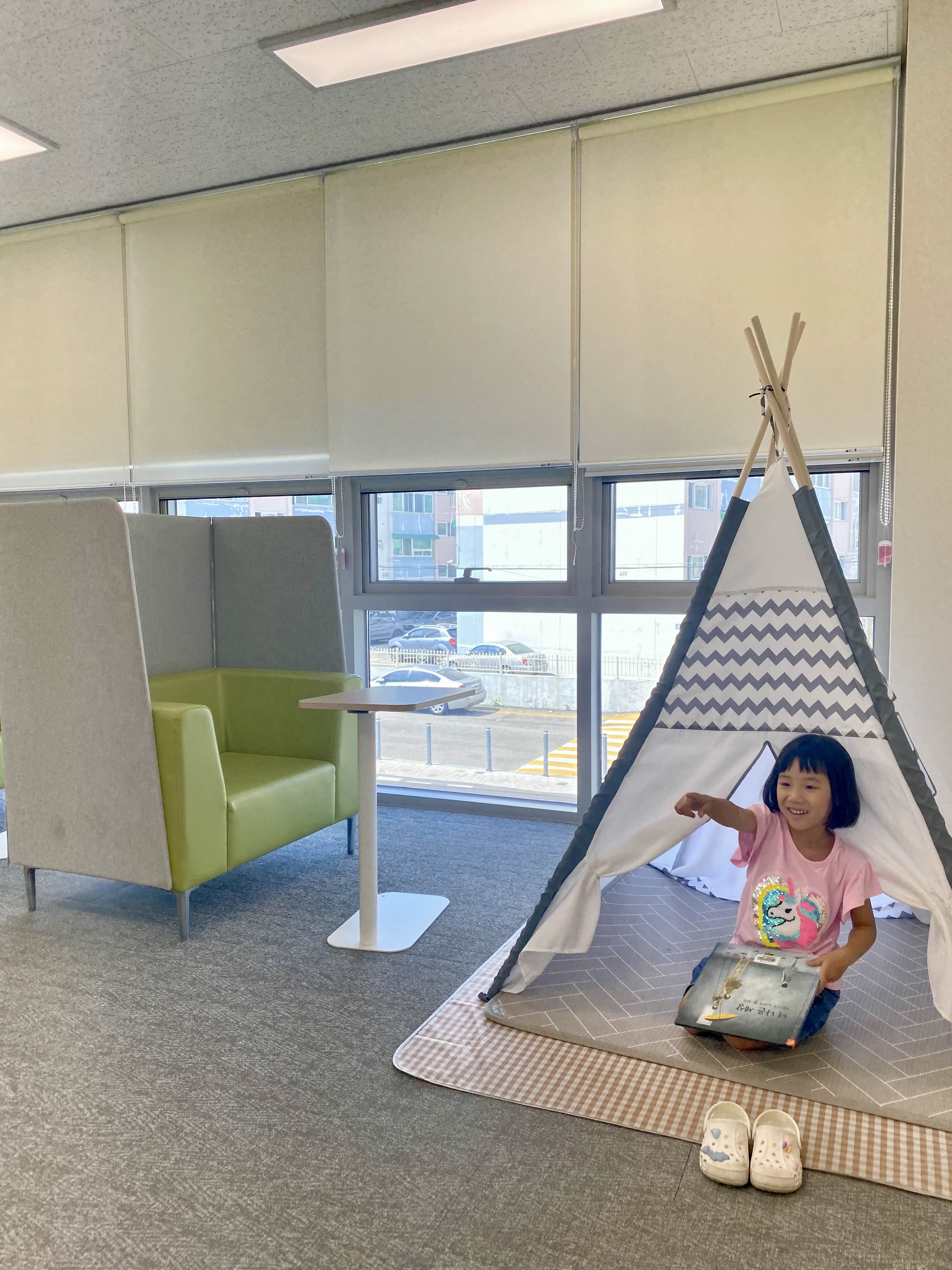 *인디언텐트 안에서 오손도손 읽을 공간도 있어요.