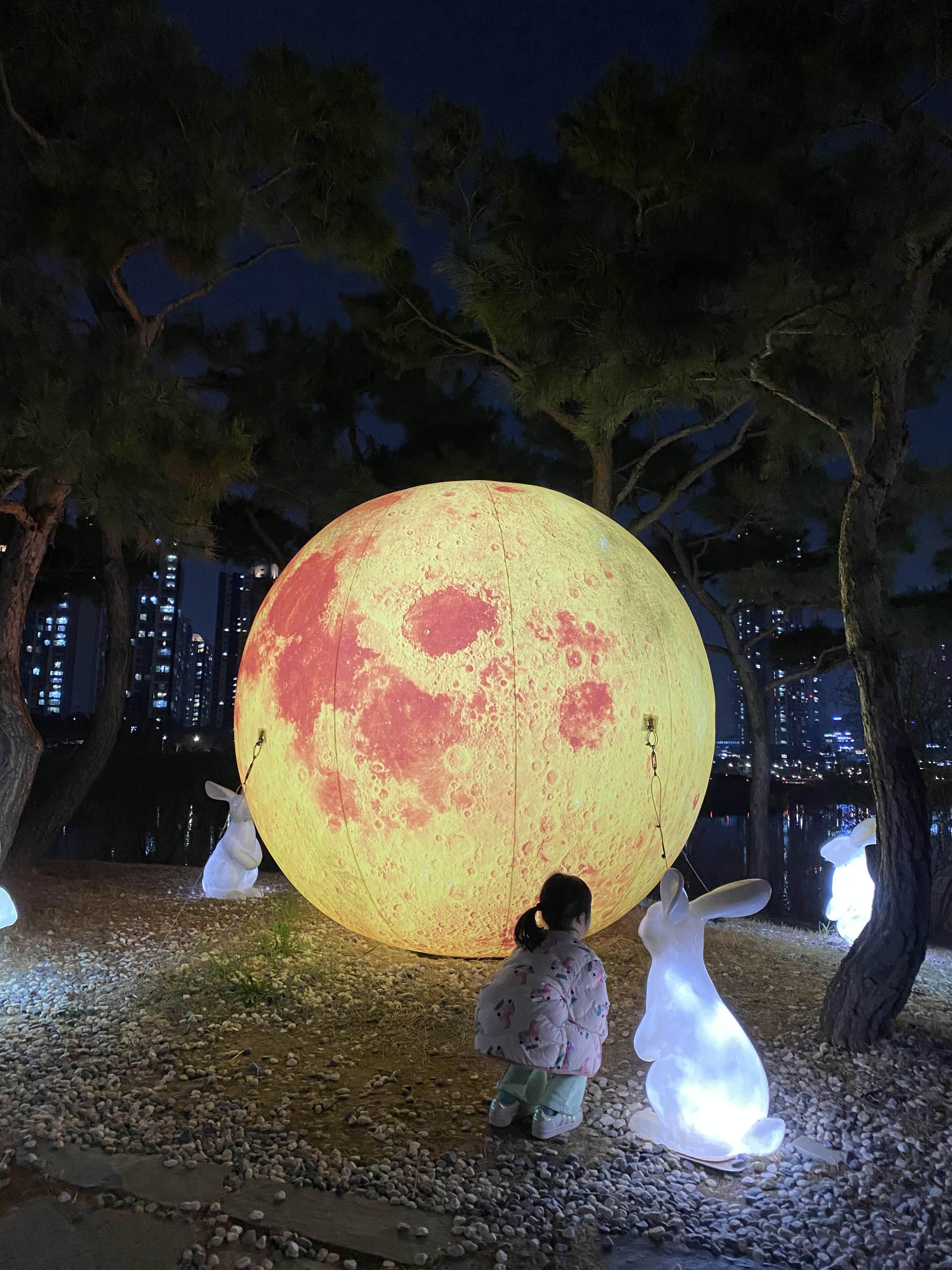 아이는 비눗방울을 들고 가 불며 놀았고, 여기저기 장식된 조명들 사이에서 신나게 뛰어놀았다.